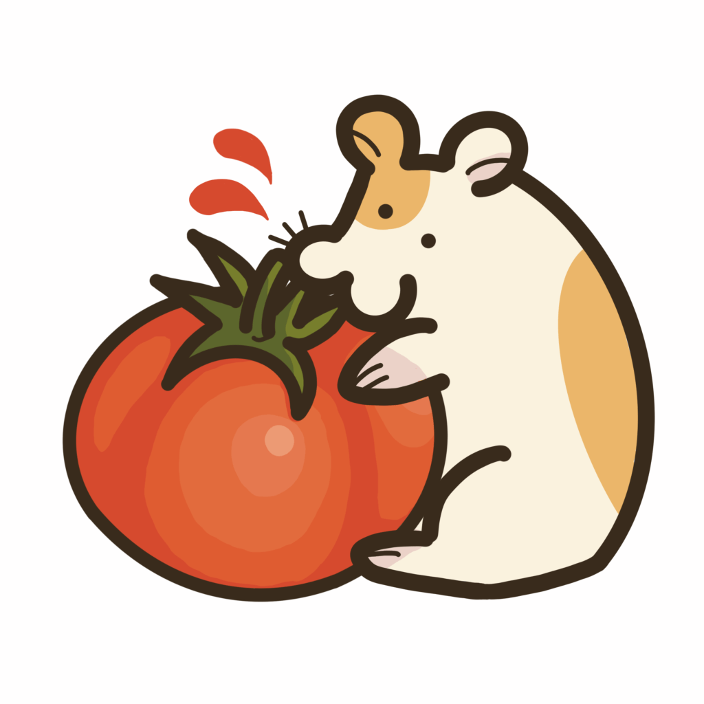 トマトをかじるハムスターの透過イラスト